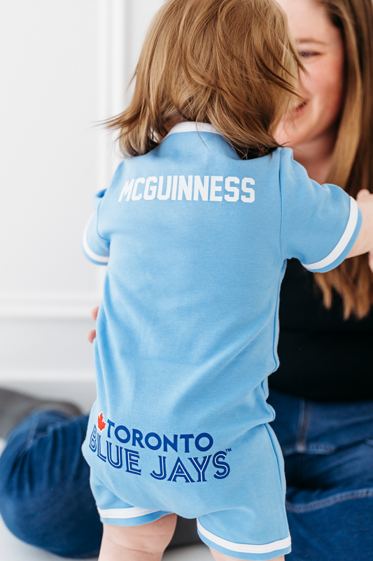 Welcome your little ones to the fan club with this MLB Baby Romper! Our powder blue romper will add team spirit to your infant's style, while snug snap closures keep them comfy and safe. Crafted with 100% cotton and official team insignia, it's the ideal way for your littles ones to show their Blue Jays pride! Authentic licensed MLB merchandise - check out the Gertex shop for more licensed sport apparel and accessories! Go team!
