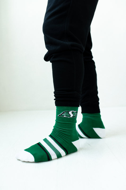 CFL Saskatchewan Roughriders Men's 3-Pack Cotton Crew Socks With Cushioned Sole