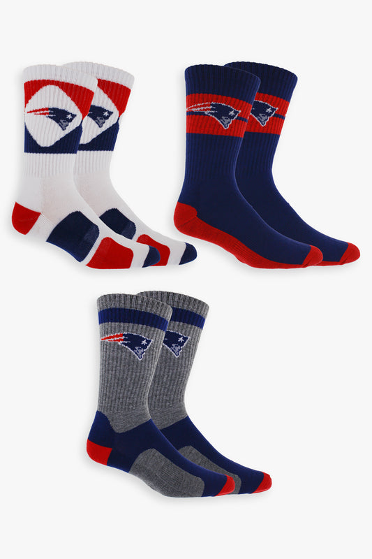Men's NFL New England Patriots 3-Pack Sport Crew Fan Socks