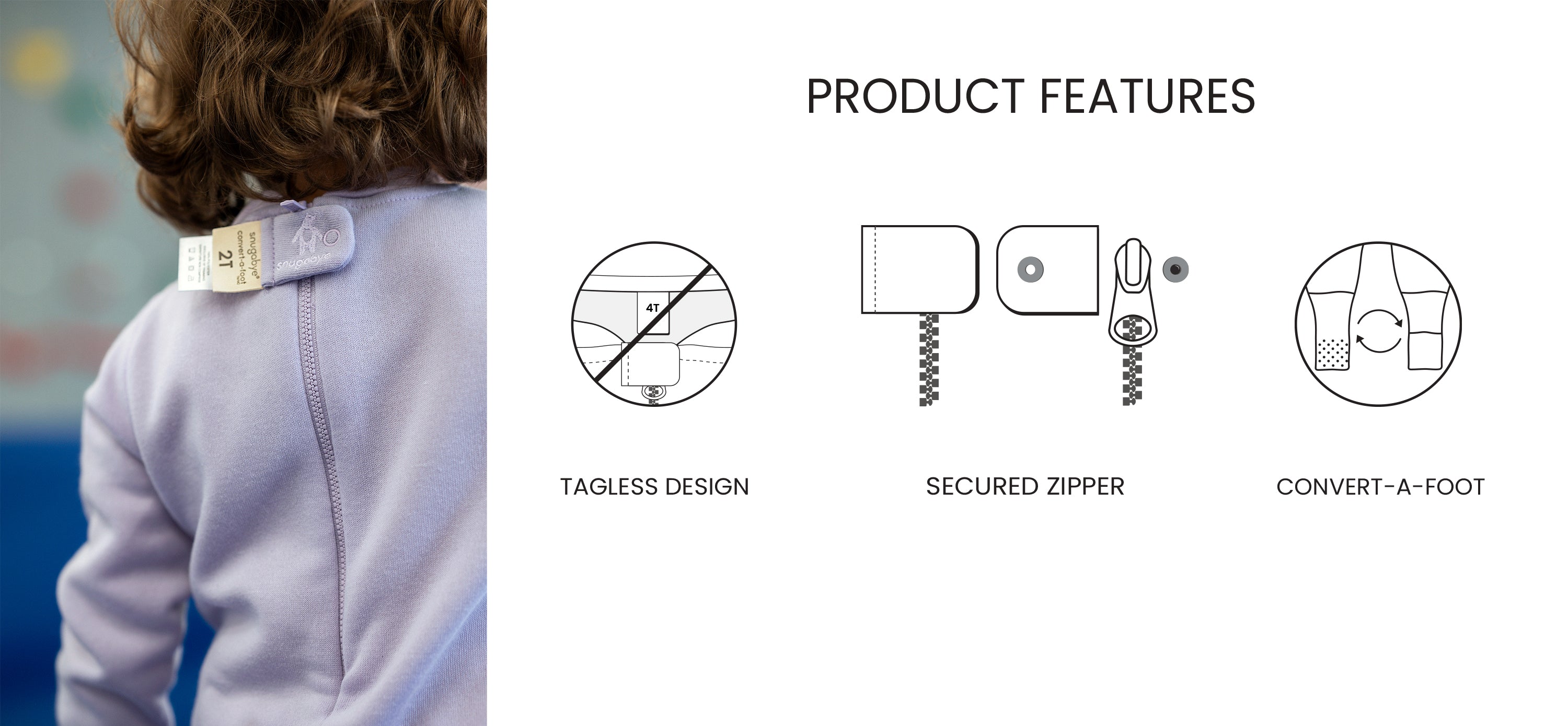 SECURE ZIPPERS & TAGS: Zippers, whether on the front or back are secure with flap, so they are not accessible by your child, who may compulsively undress. Designed with this in mind, the sleepers also feature outside tags, so your child is not bothered by them.