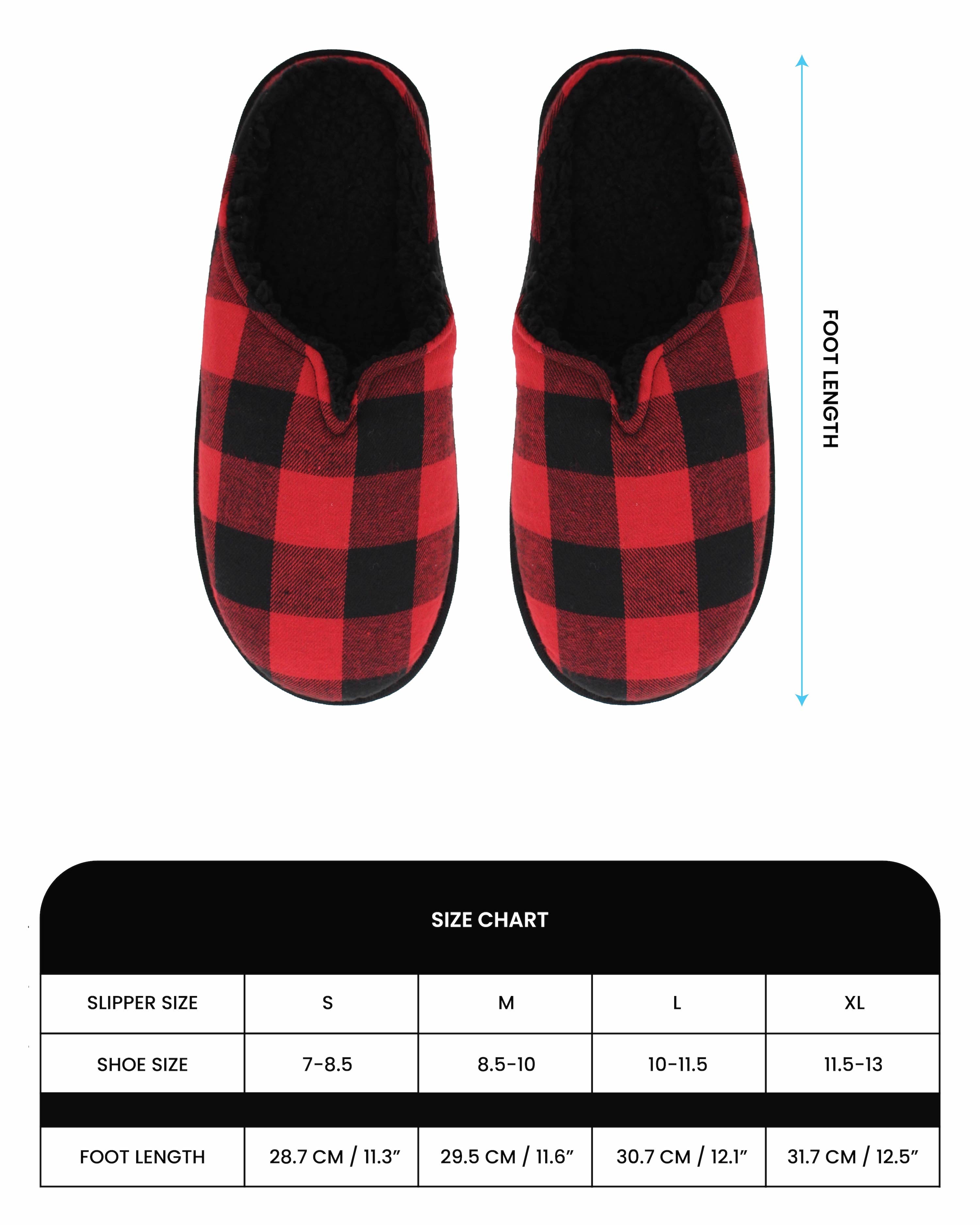 - Crafted with a classic red and black buffalo plaid pattern, these slippers exude a timeless appeal that pairs perfectly with any fan gear or casual attire. The open back design allows for easy slip-on and off, providing convenience without compromising on style.